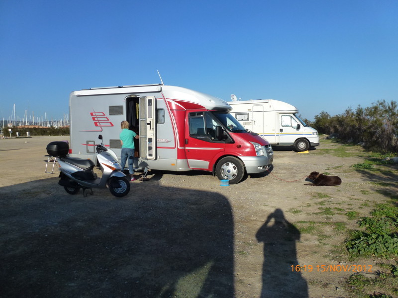 We zijn naar Gruissan, Air de 4 Vents ( N 43, 10444 O 3,09944) gereden, waar we waarschijnlijk een paar dagen blijven staan. De camperplaats inclusief alle voorzieningen kost €8,-. Het is vandaag druilerig weer, het miezert een beetje, niet koud, maar de zonnepanelen laden maar weinig.