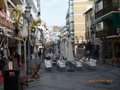 Benidorm, een bekende Spaanse badplaats aan de Costa Blanca, staat bekend om zijn massa toerisme. De stad kent meer dan 1500 winkels, waaronder meerdere Nederlandse winkels en restaurantjes.Het historisch centrum van Benidorm, vroeger een vissersplaats, ligt op een kaap die de twee grootste stranden scheidt. Er zijn er veel souvenierswinkeltjes en grote Chinese winkels waar men van alles en nog wat kan kopen. De restaurants, waar er velen van zijn, zijn naar Nederlandse begrippen erg goedkoop. Zo kun je bij Chinese restaurants voor ongeveer dan € 7,50 per persoon eten. De meeste mensen gaan dan ook uit eten bij Chinees. Ook boodschappen doen is een veel goedkoper dan in Nederland.