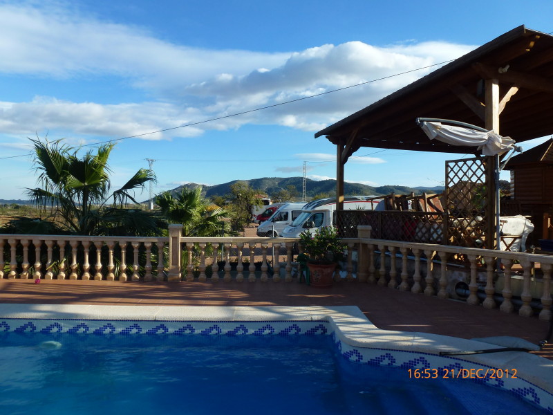 We zijn LPG gaan tanken in Alicante en omdat we in de buurt waren doorgereden naar La Romana, de camperplaats EuroPeCa van Peter en Caroline. Peter en Caroline zijn ook bekend van het programma “Ik vertrek”. Op de camperplaats zijn alle voorzieningen, inclusief een goede wifi verbinding. We hebben dus leuk met onze kinderen en kleinkinderen kunnen Skypen. Op de camperplaats sta je rustig met een prachtig uitzicht op de bergen. We hebben besloten hier tot 3 januari te blijven. Het uitzicht is prima, dus als de wereld toch nog 21 december vergaat, zitten we vooraan op de tribune. Het waait vandaag behoorlijk. Maddy is vandaag, de 21ste, jarig, dus we hebben een klein feestje met z’n tweeen.