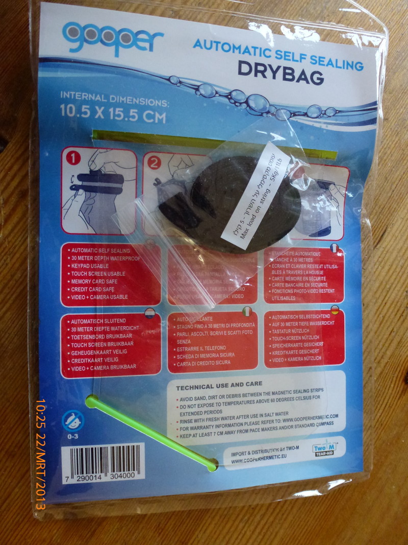 We testen de automatisch sluitende waterdichte Drybag. Hier kun je spulletjes waterdicht meenemen, zoals je gsm, i-pod, video camera, creditcard etc. Toetsenborden en touchscreens blijven bruikbaar en ook de geheugen en creditcards zijn veilig. Heel handig als u naar het strand gaat of in andere natte omgevingen bent.