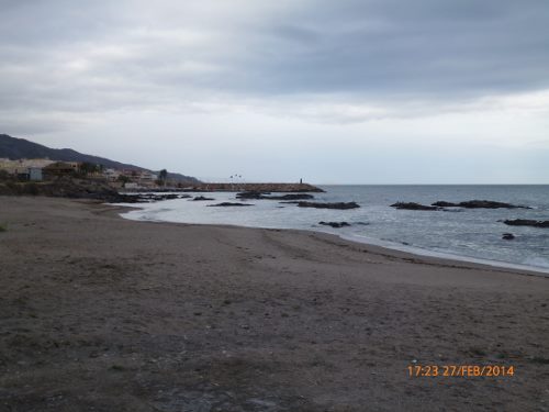 5 februari verlaten we Salobrena en rijden terug naar Almerimar, omdat er veel wind is zoeken we een plekje uit de wind. Dit vinden we in Guardias Viejas. Het waait behoorlijk.