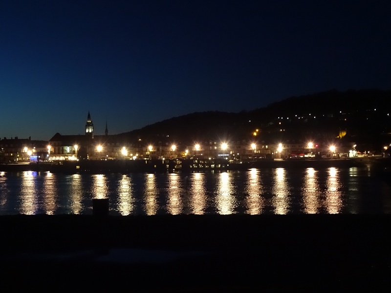 S’avonds hebben we een prachtig uitzicht op de verlichte stad.
