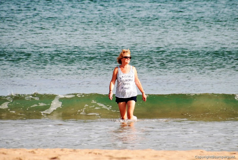 Natuurlijk gaan we naar het strand waar nog volop wordt gezwommen. Heel vervelend kwamen we een terrasje tegen. Even getest en dat was prima.