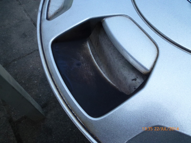Natuurlijk wil ik het product ook testen op iets dat erg vuil is en wat ik niet schoon kreeg. Dat waren de achterste wieldoppen van de camper. Deze zijn erg vuil door remstof, pekel e.d.