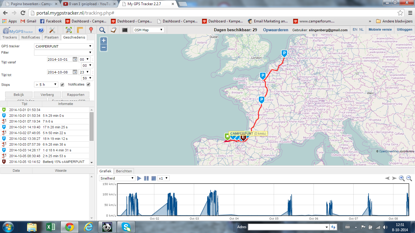 We staan nu in Capbreton, Zuid-West Frankrijk, de camperplaats is erg druk. Maar we hebben mooi weer en kunnen buiten zitten. De route wordt vastgelegd door de My GPS Tracker Lite.