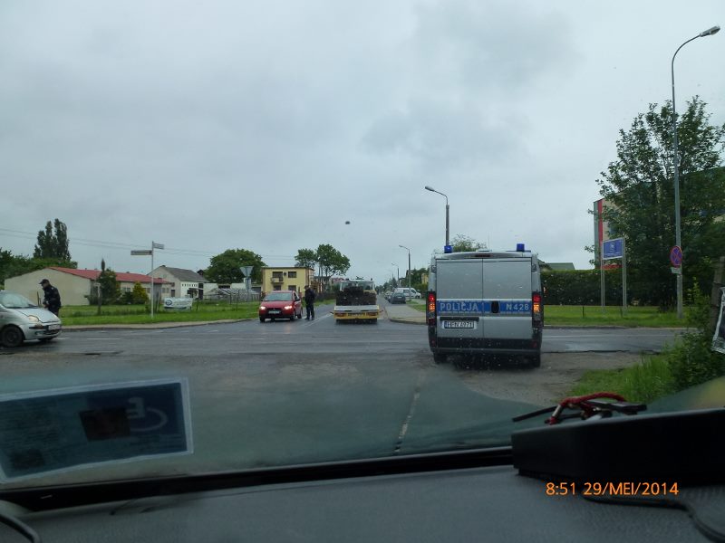 We vertrekken naar Elbag (Elbing) N 54,15349 en O 19.39393 vertrokken. Onderweg bleek dat de navigatiestemen de nieuwe vierbaanswegen rond Gdanks maar gedeeltelijk kenden. Maar na even fout gereden te zijn, de weg weer gevonden. Onderweg kregen we een stopteken van de politie. Er was een ernstig verkeersongeluk gebeurd en de weg was zeker nog een kwartier afgesloten. Eén van de politiemensen was Engels aan het leren en vond het geweldig om in het Engels van alles uit te leggen. Er waren in hun politiekorps maar weinig mensen die Engels spraken en verstonden. Toen ik vertelde een gepensioneerd collega uit Nederland te zijn en dat de meester politiemensen daar Engels