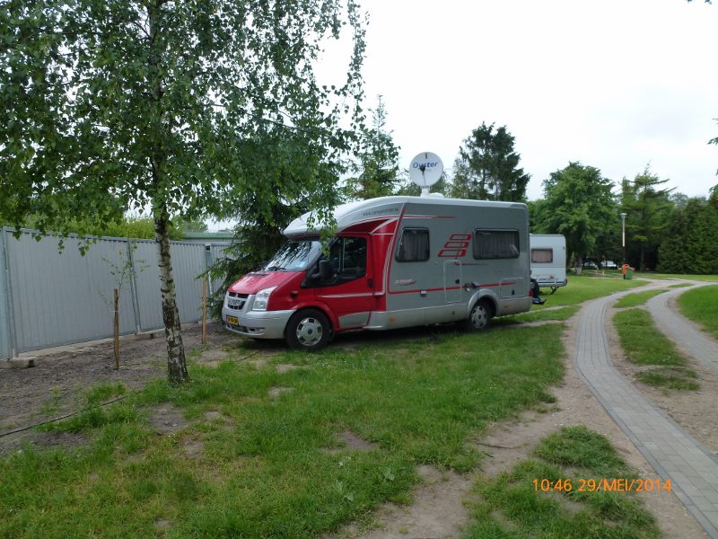 en Duits konden spreken was hij verbaast. Natuurlijk gevraagd of vrij overnachten in Polen was toegestaan. Hij vertelde dat al je er mocht parkeren, je er ook mocht slapen. Maar niet kamperen. In de omgeving van grote steden raadde hij het wel af. Na een kwartiertje mochten we verder rijden en kwamen we een zestal aantal zeer moderne brandweervoertuigen tegen. Kennelijk waren deze helemaal voor bergingen uitgerust. Voor zover ik kon beoordelen beter dan vele Nederlandse brandweer voertuigen. Onderweg verbaasden we ons weer hoe gevaarlijk men hier inhaalt. De camping in Elblag heeft camperplaatsen, direct aan de Elblag rivier. Het uitzicht op de rivier is tijdelijk weg omdat men aan het werk is. Er staan grote schermen tussen de camperplaatsen en het water. Jammer maar even niet anders.