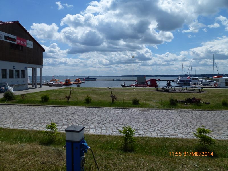 We staan nu in Gizycko (N54,031239 en O 21.774380) aan de haven. We hebben een prachtig uitzicht over een van de meren van Mazurië. Cizycko is een klein stadje in het hartje van de Mazurische meren. Het is een befaamd centrum voor scheepvaart en watersport. Een overnachting kost ongeveer € 12,50 inclusief stroom.