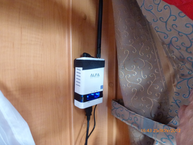 Ook wilden we onze Alfa router vastzetten op een manier dat deze eenvoudig te verwijderen is voor bijvoorbeeld resetten. Dit hebben we gedaan door Tye-Aid te combineren met verwijderbare tape, wat perfect werkt.